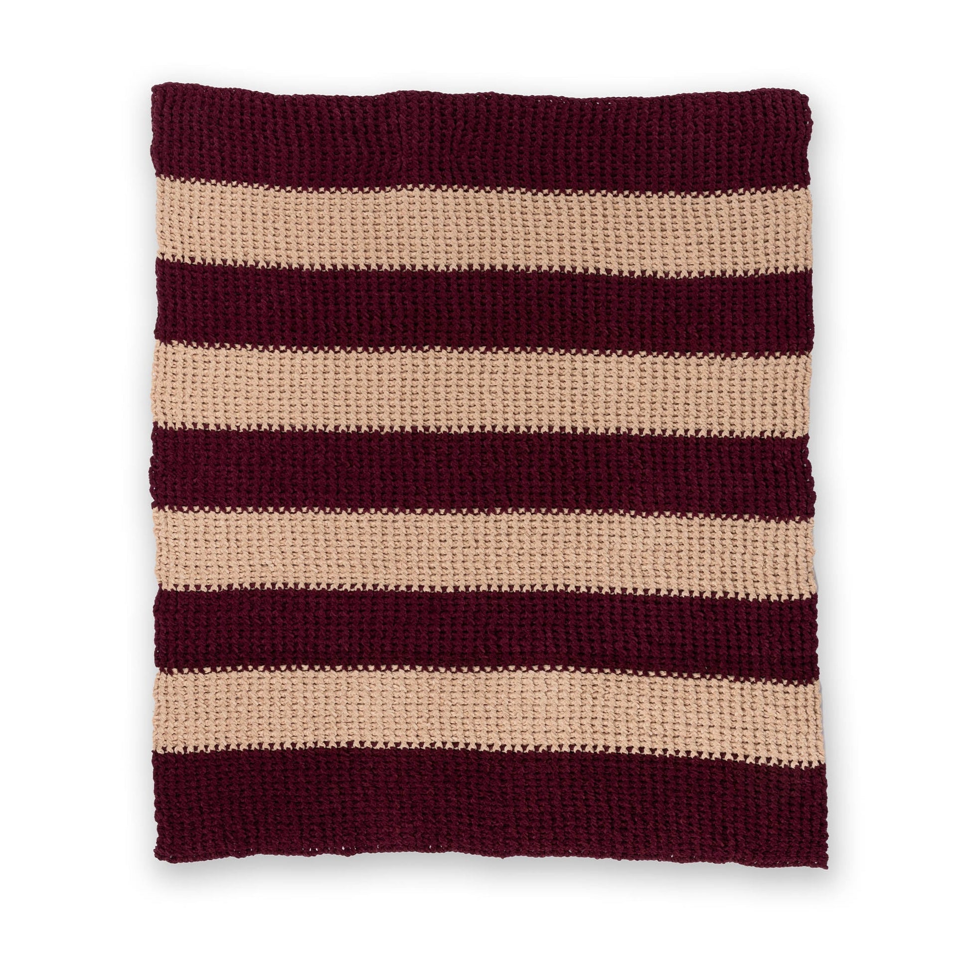 Deeply textured with a cushy ribbed pattern, this crochet blanket is indulgently warm, while adding bold style to a room. Stitched in the soft, chenille texture of Bernat Future Hope, this throw is worked by using alternating double crochet front post and double crochet back post stitches to create signature cushy ribs in bold stripes. Perfect as an extra layer of warmth over bed linens or draped in your favorite reading nook, this blanket adds comfort and character to any corner of your home.