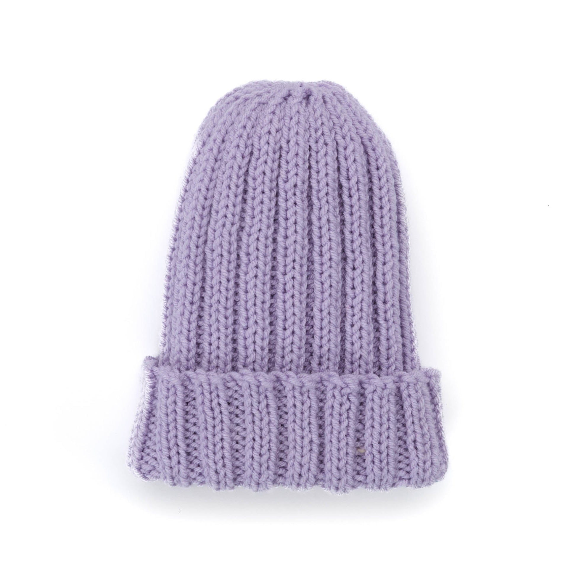 Beat the chill with this beginner knit hat! Stitched flat and seamed together, this topper is created in Red Heart With Love Low Pill using basic knit and purl techniques. The pattern is worked in 2x2 ribbing from the lower edge to the top, where simple decreases are used to shape the crown. Once complete, the back seam is sewn together and the top is cinched to close this cozy cap. Whether in the backyard building a snowman or heading to the après ski, the snug and comfy fit of this hat is sure to keep you warm and protected all winter long.
